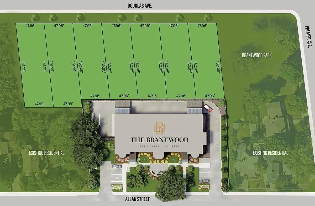 In addition to The Brantwood Residences, the nearby Brantwood Estate Lots offer an equally exclusive opportunity for bespoke luxury living. Located on Douglas Avenue in South East Oakville, these estate lots are nearly 50 feet wide and range from 130 to 140 feet in depth, providing ample space for custom-built homes designed by renowned architect Bill Hicks. This collection of estate lots offers buyers the chance to create their dream home in one of Oakville’s most prestigious neighbourhoods, blending contemporary elegance with timeless design.